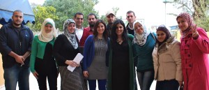 The Gaza team from left: Khaled Harara, Eman Hilles, Sameeha Olwan, Ayman Qwaider, Mohammed Ghalayini, Manar Zimmo, Alaa Shoublaq, Samah Sabawi, Mahmoud Hammad, Najwan Anbar, Alia Abu Oriban and Ayah Abubasheer.